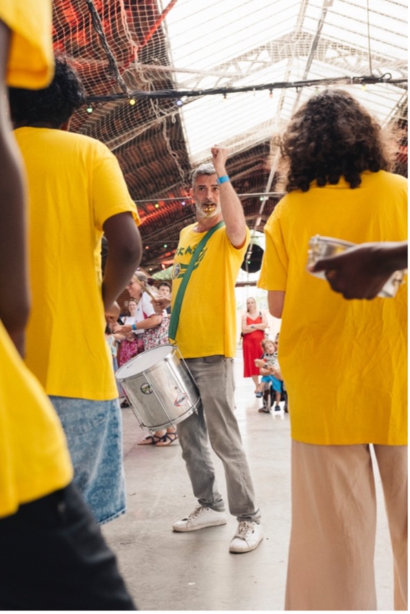 Le mestre Arnaud Goutagny a animé des ateliers de batucada à destination des jeunes et des professionnels, directement au sein de la maison. Tous les instruments nécessaires à la poursuite de cette discipline sur leur temps libre (tambours, cloches ou encore ganzas) ont été mis à leur disposition quotidienne. Durant l’été 2025, les batuqueiros ont pu montrer l’étendue de leur talent lors de deux représentations en public au Point d’Aubervilliers pendant la soirée Talents et Réussites du Département et pendant l’AG de l’AEPC Concorde.