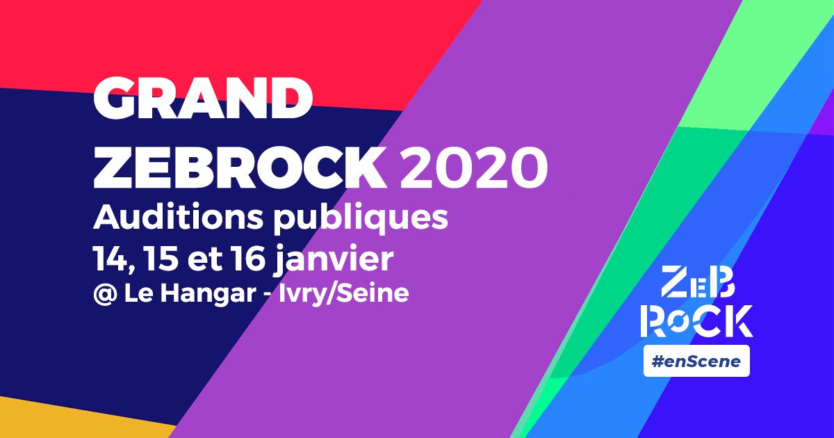 • 14, 15 et 16 janvier : les auditions publiques au Hangar à Ivry et annonce des 6 sélectionnés du Grand Zebrock 2020